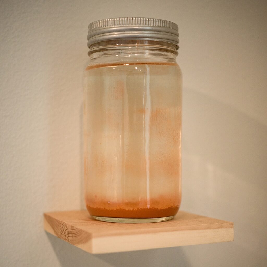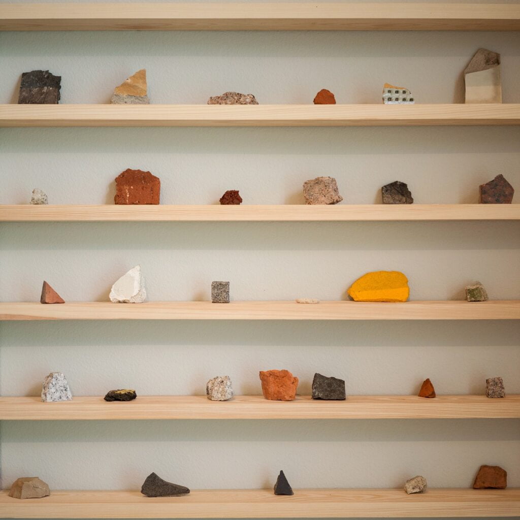 – I «Byens flass» utforskar eg det urbane landskapet på jakt etter bitar som har falle av bygningar, institusjonar og infrastruktur som kjelde til pigment. Bitane eg finn, knuser eg til pigment, blandar med olje og bindemiddel til eg har stadsspesifikke trykksverter som eg bruker til å trykkja sirklar i høgtrykk. Serien utgjer til no 30 slike trykk per dags dato. Trykka stiller eg ut saman med glas som inneheld pigmenta, video av innsamlinga av materiale, bilete og døme frå bygningsmassen før denne vart bearbeidd til pigment.