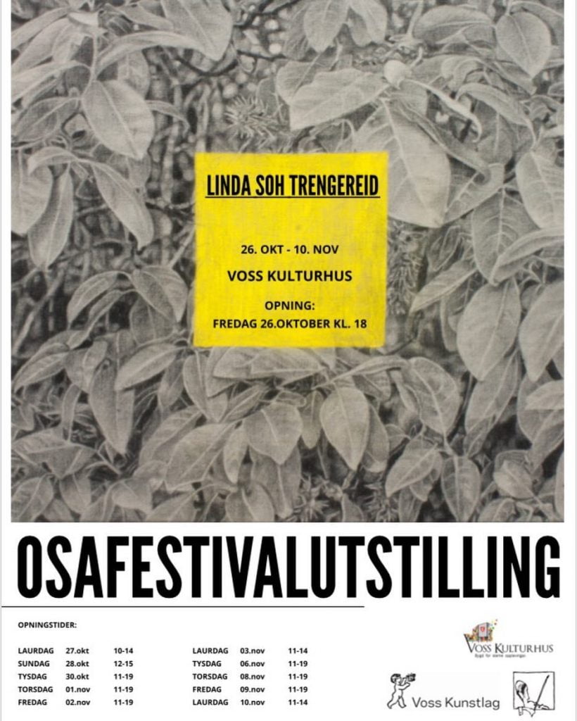 «Linda Soh Trengereid (f. 1984) stiller ut på Voss kulturhus en rekke tegninger og malerier som tar utgangspunkt i fotomateriale hentet fra ulike skoger, med hovedfokus på urskog og regnskog. Hun jobber med det kontinuerlige mylderet i motivene. Arbeidene kan også sees på som en form for dokumentasjon på noe forgjengelig, en form for portrettering av natur i konstant endring.